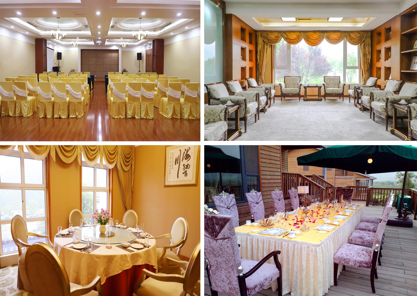 球场会所内设宴会厅、自助餐厅、精品包间等,宴会厅可同时容纳200人就餐,精品包间容客70位,多功能厅容客110余人,满足年会、各类中小型会议及婚宴、满月宴、生日宴、颁奖礼等多种宴席需求,并提供品种丰富的定制纯手工熟食礼盒。多功能会议厅设备齐全、环境优良;餐厅环境优美、毗邻球场,设置观景台俯瞰湖光山色,是会议、宴请、度假的不二之选。