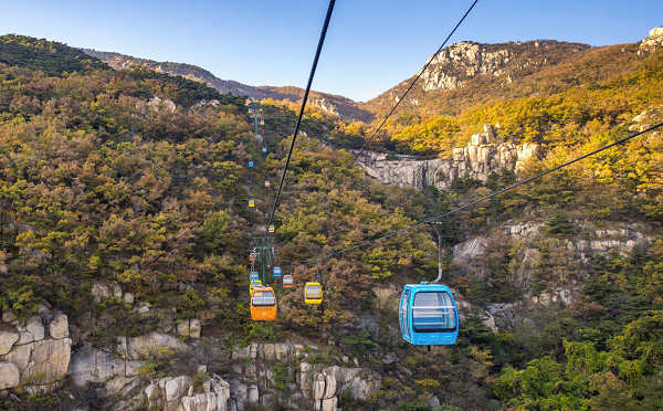 索道:新甫山观光索道水平距离长836米,高差269米。设双人封闭式吊厢39个,上站位于云谷飞瀑以西,索道单向运行时间12分钟,每小时运量400人。乘索道可浏览云谷全景。