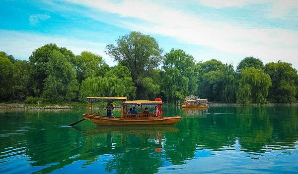 老龙湾摇橹船可乘坐八名游客,沿老龙湾主水面环游一圈,时长半个小时。置身湖中,一边聆听船妹子讲解老龙湾的前世今生,哼唱各种小调;一边随着船身的摇晃欣赏两岸的美景,置身于老龙湾的美景中宛若“人在画中游”。