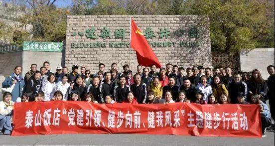 为充分发挥基层党组织的战斗堡垒作用,凝心聚力冲刺四季度,日前,银座旅游集团北京泰山饭店党支部组织全体党员及近三百名员工分批前往北京八达岭国家森林公园开展“党建引领、健步向前、健我风采”主题党日活动。
