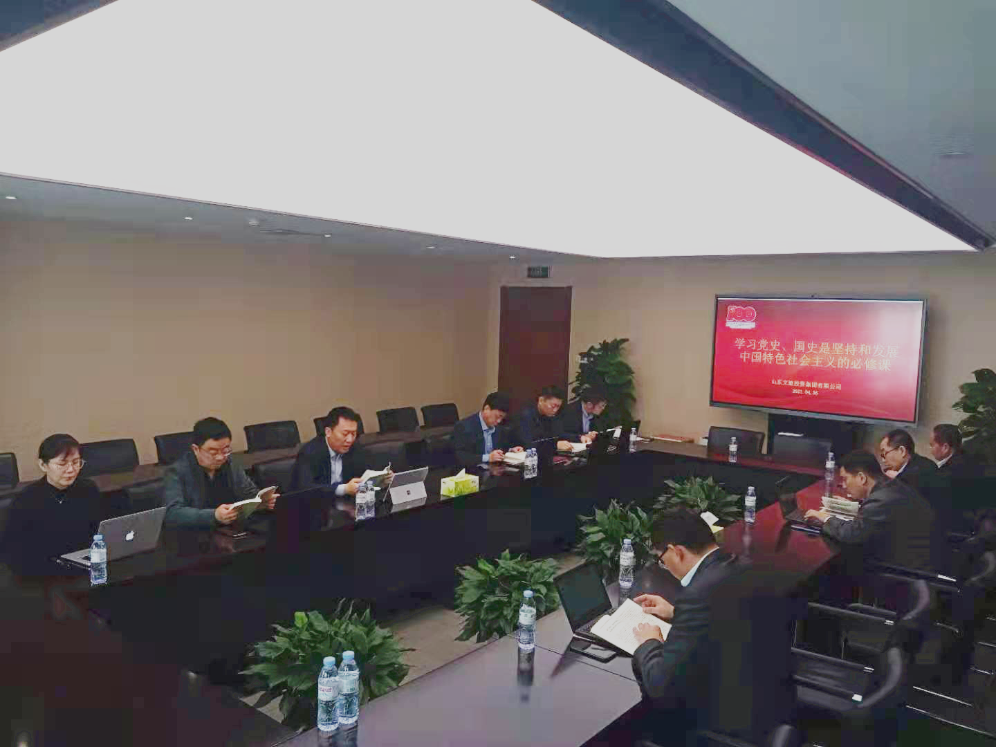 近日,太阳集团tcy8722山东文旅投资集团有限公司(以下简称“公司”)召开党委理论中心组(扩大)学习会议,集体学习了习近平总书记《论中国共产党历史》一书的“学习党史、国史是坚持和发展中国特色社会主义的必修课”篇目。公司党委书记、董事长王化龙领学,并带头讲学习心得体会。党委成员和经营班子成员参加集体学习,并围绕党史学习教育进行发言。