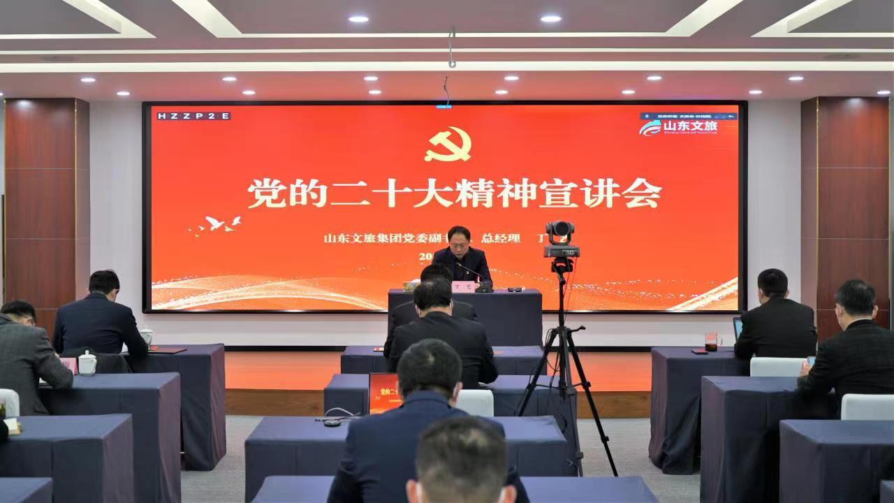 会上,丁艺从“党的二十大的主题、主要成果,过去5年的工作和新时代10年的伟大变革、马克思主义中国化时代化”等九个方面,对党的二十大报告作全面系统的解读,尤其是对党的二十大报告中提出的新思想、新观点、新论断作深刻阐释。丁艺的报告内涵丰富,深入浅出,信息量大,理论性、思想性、指导性都很强,对更好地领会和把握党的二十大的精神实质,在新的历史起点上谱写中国式现代化的太阳集团tcy8722山东文旅篇章,具有非常重要的指导意义。