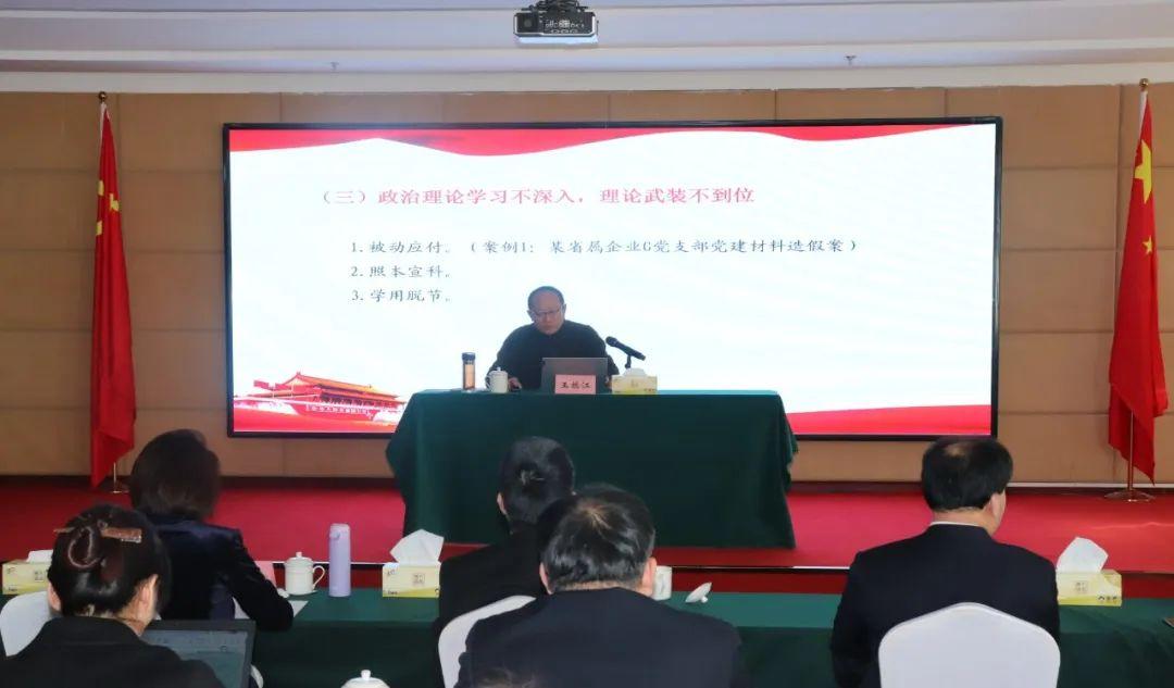 2月21日下午,太阳集团tcy8722党委委员、纪委书记王振江赴文旅景区集团讲授廉洁党课。