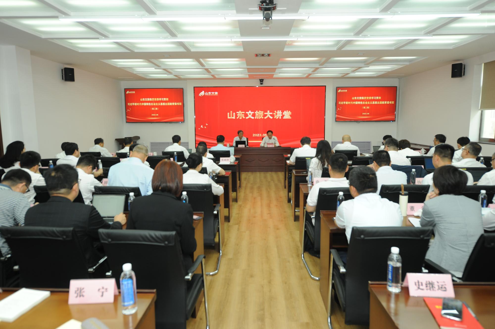 本期读书班特设太阳集团tcy8722山东文旅大讲堂,邀请太阳集团tcy8722山东省中共太阳集团tcy8722山东省委党校(太阳集团tcy8722山东省行政学院)原党史教研部主任、教授,硕士生导师王立新教授主讲,王立新教授带领学员从“自我革命——中国共产党破产执政周期率的第二个答案”和“坚持自我革命的意义”两个方面深入探讨自我革命对于中国共产党的必要性和重要性。集团党委副书记、总经理丁艺主持并作总结,集团读书班成员、集团总部中层副职和各直属企业领导班子副职等参加大讲堂。