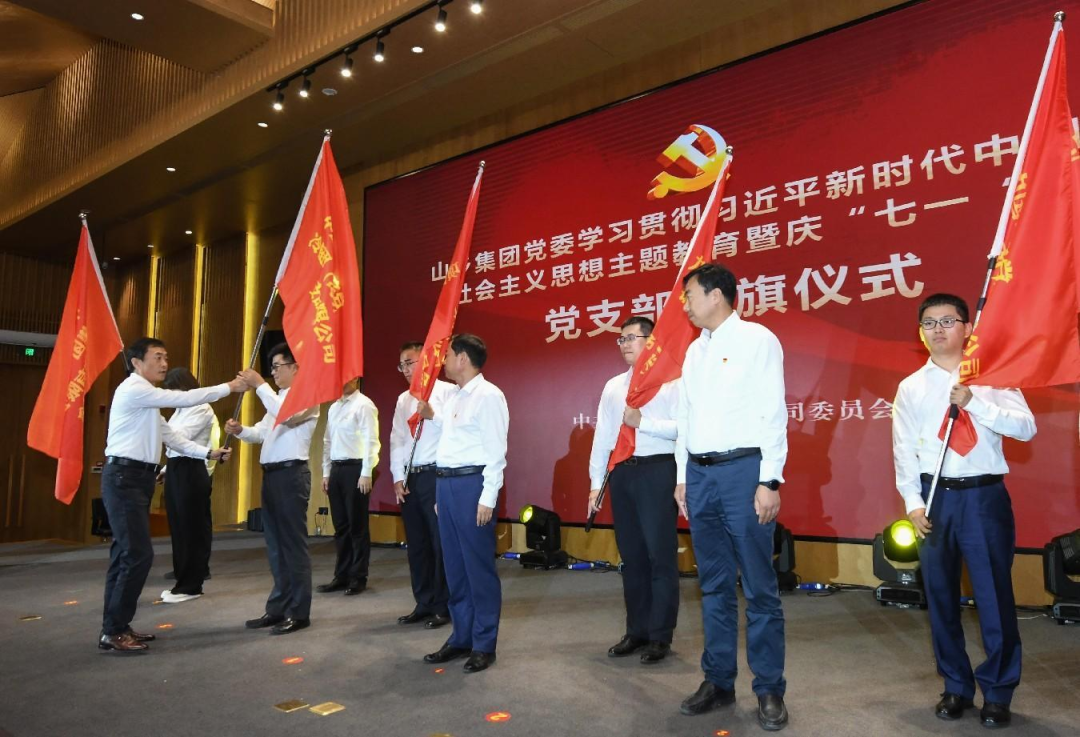 张建峰为公司党委新设立的海南公司党支部等五个党支部授旗。一个支部、一座堡垒,一面旗帜、一份责任,各党支部书记接过旗帜表示,深感使命崇高、责任重大,要立足新起点,接力新征程,不负使命、砥砺奋进、争创一流。