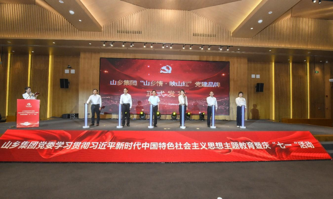 会上,与会领导共同上台发布山乡集团“山乡情·映山红”党建品牌。