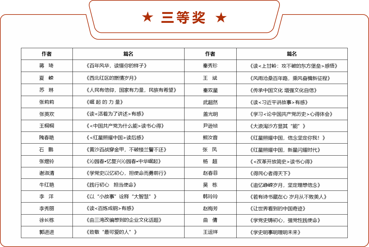 “牢记初心 保持赤心 坚定信心”党史读书竞赛一等奖、二等奖