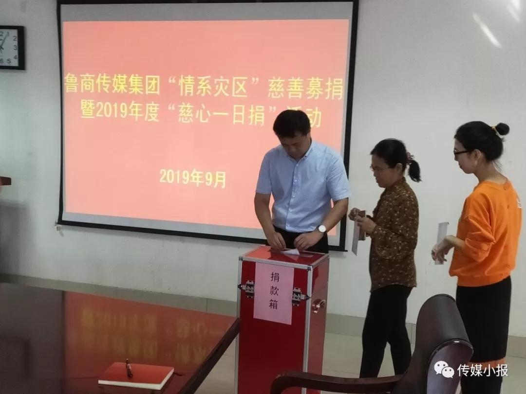 为响应上级号召,用爱心传递真情,9月24日上午,鲁商传媒集团有限公司组织开展“情系灾区”慈善募捐暨2019年度“慈心一日捐”活动。集团党委书记、董事长孙超带领班子成员及总部30余名干部员工参加了活动,在传媒集团吹响了爱心集结号。