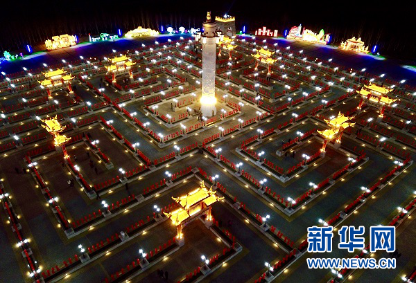 夜晚的盐池九曲民俗文化园流光溢彩