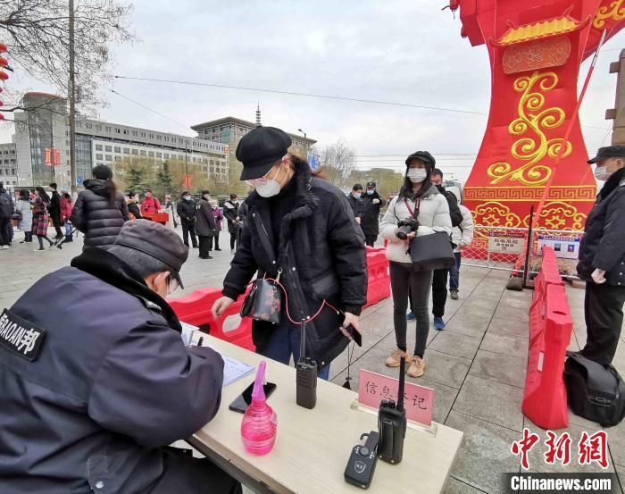 资料图:图为趵突泉开园首日,游客排队进行个人信息登记。 赵晓 摄