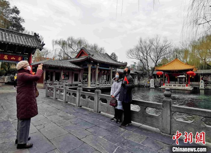 资料图:图为趵突泉景区恢复迎客后,游客在三股泉附近拍照留念。 赵晓 摄