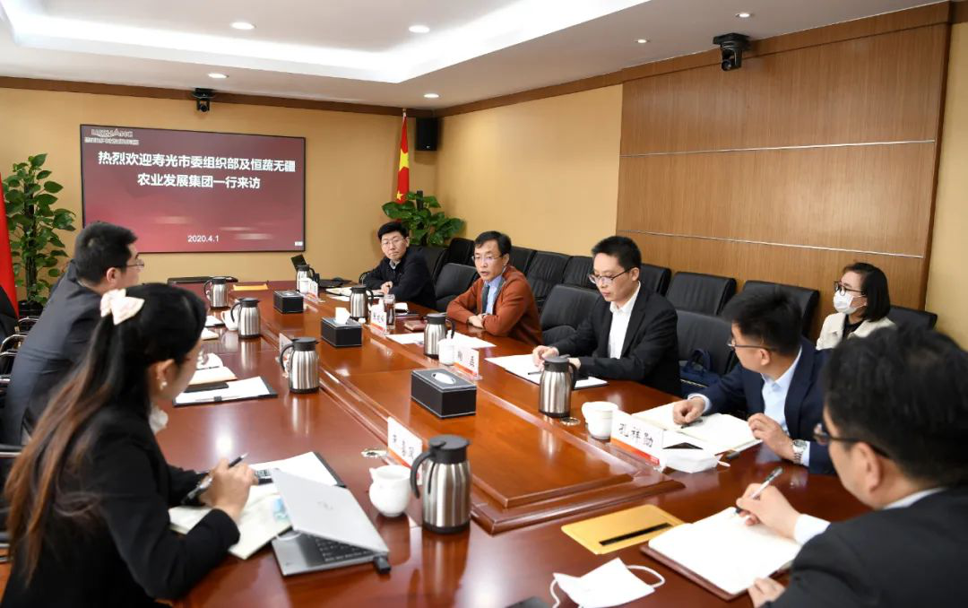 4月1日,寿光市委组织部人才办主任张利华一行到访鲁商乡村发展集团,就乡村振兴项目合作进行座谈交流。鲁商乡村发展集团有限公司(简称鲁商乡发展)总经理张建峰、省商业集团(简称鲁商集团)组织人力资源部部长助理鞠磊出席座谈会。鲁商乡发展总经理助理吕蒙、寿光恒蔬无疆农业发展集团有限公司董事长桑毅振陪同。