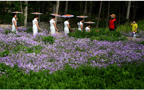 在“五一”小长假期间,不少游客来到位于泰安新泰市陈角峪观光游览,这里有文化氛围浓厚的集市、有美丽芬芳的大片花海,游客徜徉其中,流连忘返。