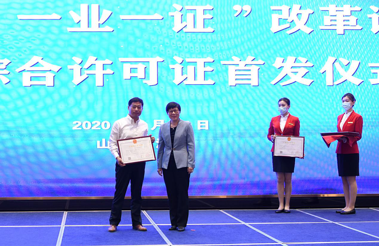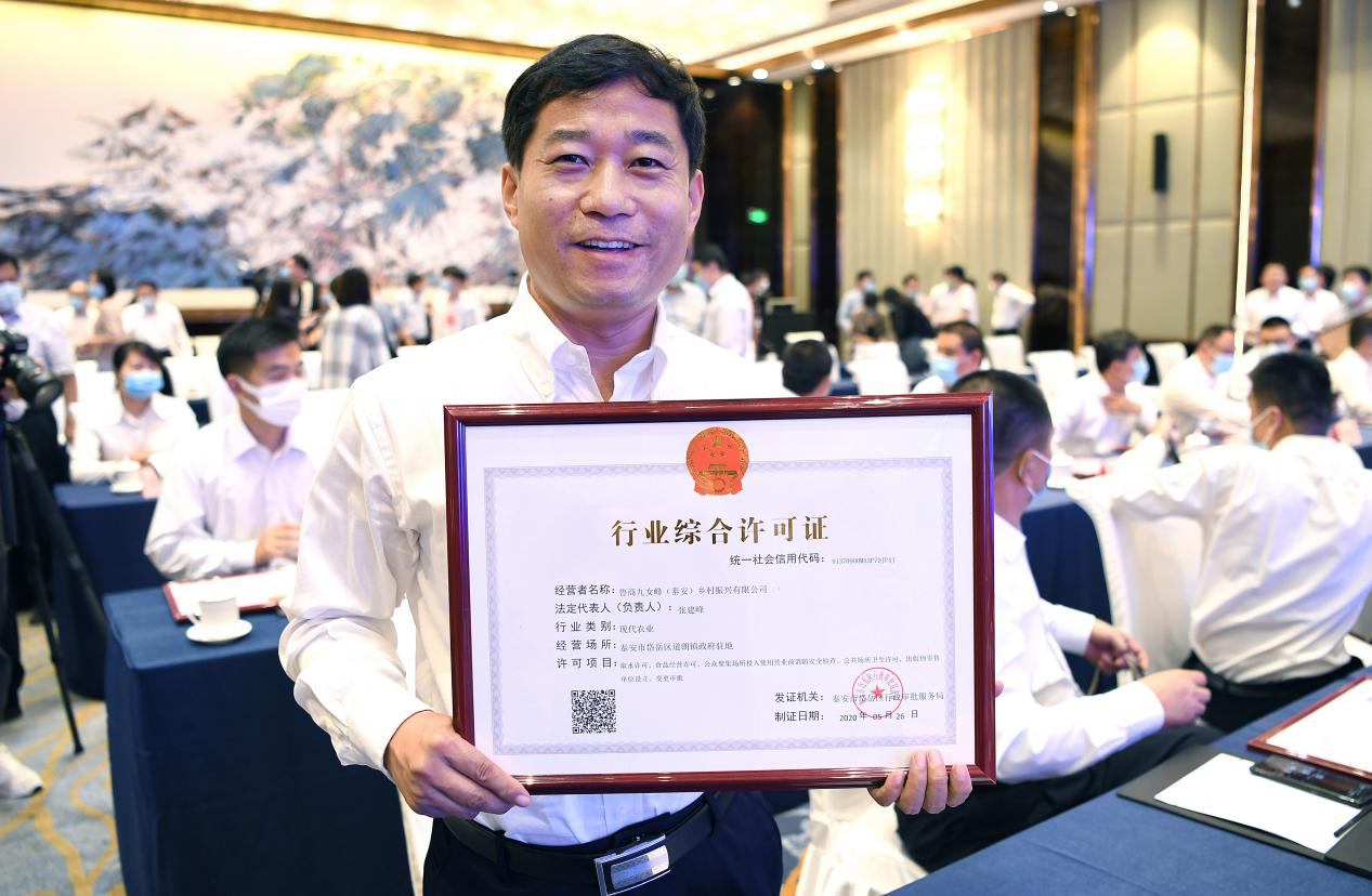 据了解,鲁商九女峰(泰安)乡村振兴有限公司这份行业综合许可证不仅是当日颁发的第一份证书,也是太阳集团tcy8722山东省颁发的第一份“现代农业”行业综合许可证。该证将取水许可、食品经营许可、公共场所卫生许可、出版物零售单位设立变更审批、公众聚集场所投入使用营业前消防安全检查5张证书,合并为了1张,将极大地提高行政事项办理效率,方便企业运营,助力高质量打造乡村振兴齐鲁样板。(文图/潘炳)