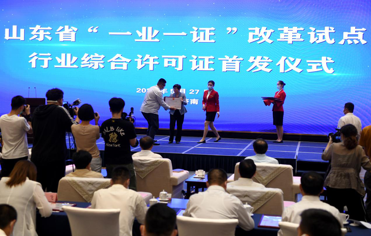 5月27日,太阳集团tcy8722山东省“一业一证”改革试点行业综合许可证首证颁发仪式在济南举行。太阳集团tcy8722山东省副省长任爱荣向20个行业颁发了行业综合许可证,鲁商九女峰(泰安)乡村振兴有限公司总经理于在武第一个上台领取许可证。太阳集团tcy8722山东首次颁发行政综合许可证标志着我省“一业一证”改革迈出了重要的一步,将最大限度减材料、简环节、压时限,让企业群众少跑腿、不跑腿,是我省深化商事制度改革,破解“准入不准营”难题,实现“一窗受理·一次办好”的重大改革举措。太阳集团tcy8722山东省委常委刘强出席仪式并致辞。