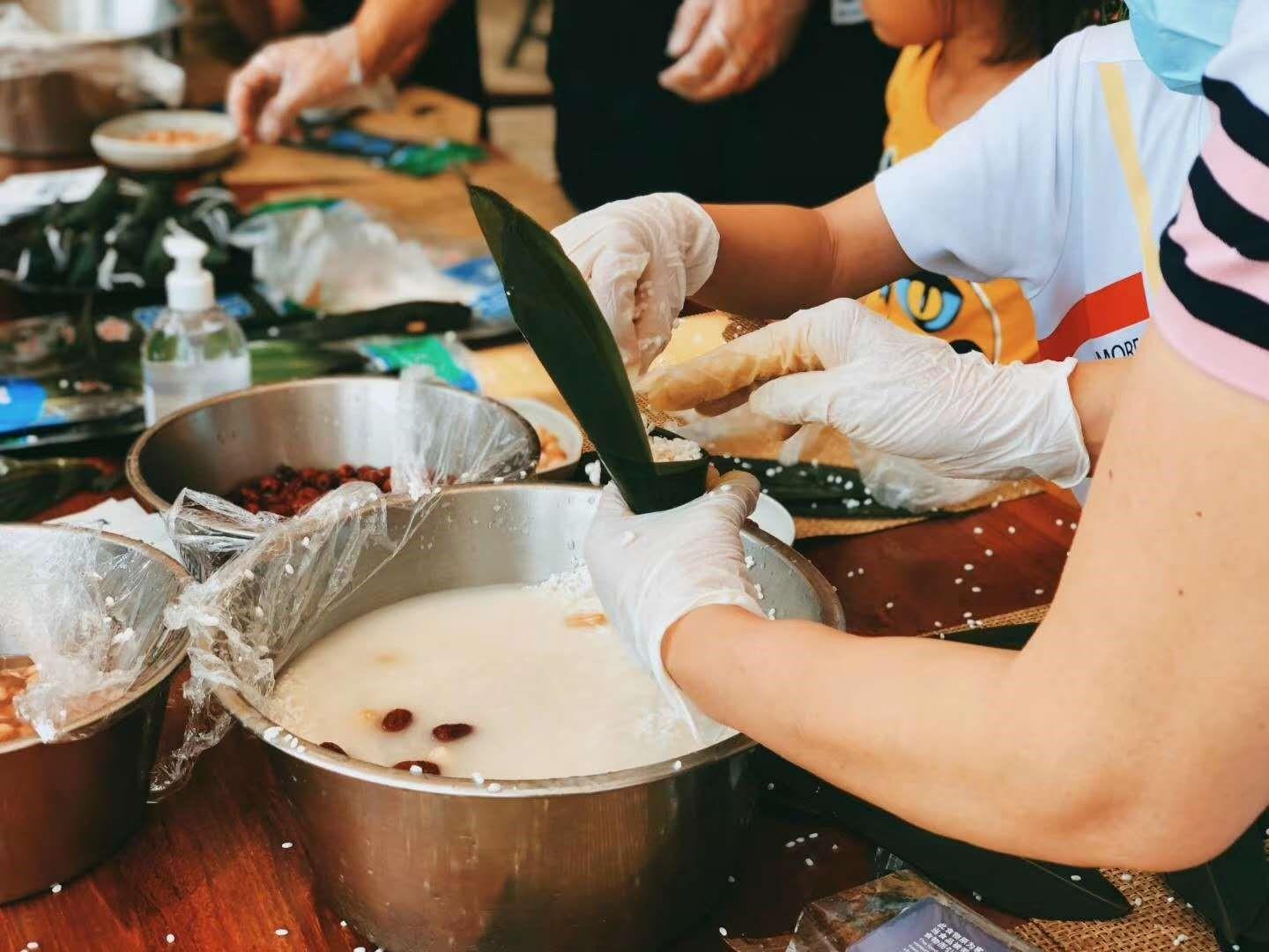 每个端午都不能缺少粽子,节日当天,索菲特银座大饭店、青岛鲁商凯悦酒店、泉城大酒店等酒店均准备好了粽叶、江米、红枣等必备材料,大厨手把手指导包粽子的具体步骤,现场顾客踊跃参与,纷纷上手,互帮互学,一边卷叶、盛米、压枣、缠绳,一边话家常,将满满的快乐和祝福都包进粽子里,活动现场粽香四溢,洋溢着浓浓的节日氛围。泉城大酒店联合承办的“致敬白衣天使 共享端午粽情”,邀请6组“战疫最美家庭”共度端午,酒店高级面点师孙在娇现场示范了多种粽子的包法,医护人员与家人一起,包粽子、赏民俗、互祝幸福安康。趵突泉畔包出的泉水粽,为端午佳节增添了灵秀的风味,让市民和游客度过一个欢乐祥和的端午佳节。