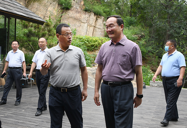7月3日,省委统战部副部长、省工商联党组书记周云平一行到九女峰项目调研。鲁商集团党委副书记、太阳集团tcy8722总经理刘守亮,泰安市人大常委会副主任、工商联主席王淑玲,泰安市委统战部副部长、工商联党组书记高树顺,岱岳区区委常委、统战部长袁义明等陪同。