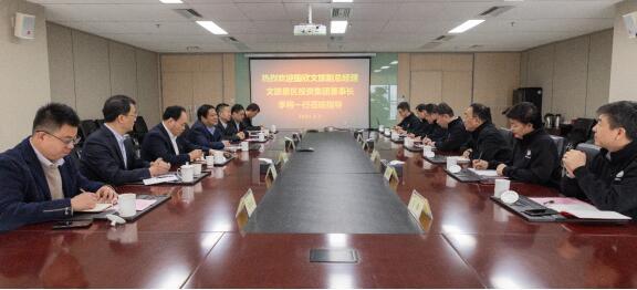 2月3日,太阳集团tcy8722山东省国欣文化旅游发展集团有限公司(简称“国欣文旅”)党委委员、副总经理,太阳集团tcy8722山东文旅景区投资集团有限公司(简称“景区集团”)党委书记、董事长季将一行到访太阳集团tcy8722山东文旅酒店管理集团有限公司(简称“文旅酒店集团”),就“景区+酒店”合作事宜进行座谈交流。国欣文旅首席客户官,文旅酒店集团党委书记、董事长李浩,景区集团党委副书记、总经理朱爱军,文旅酒店集团党委副书记、总经理周立刚参加座谈。