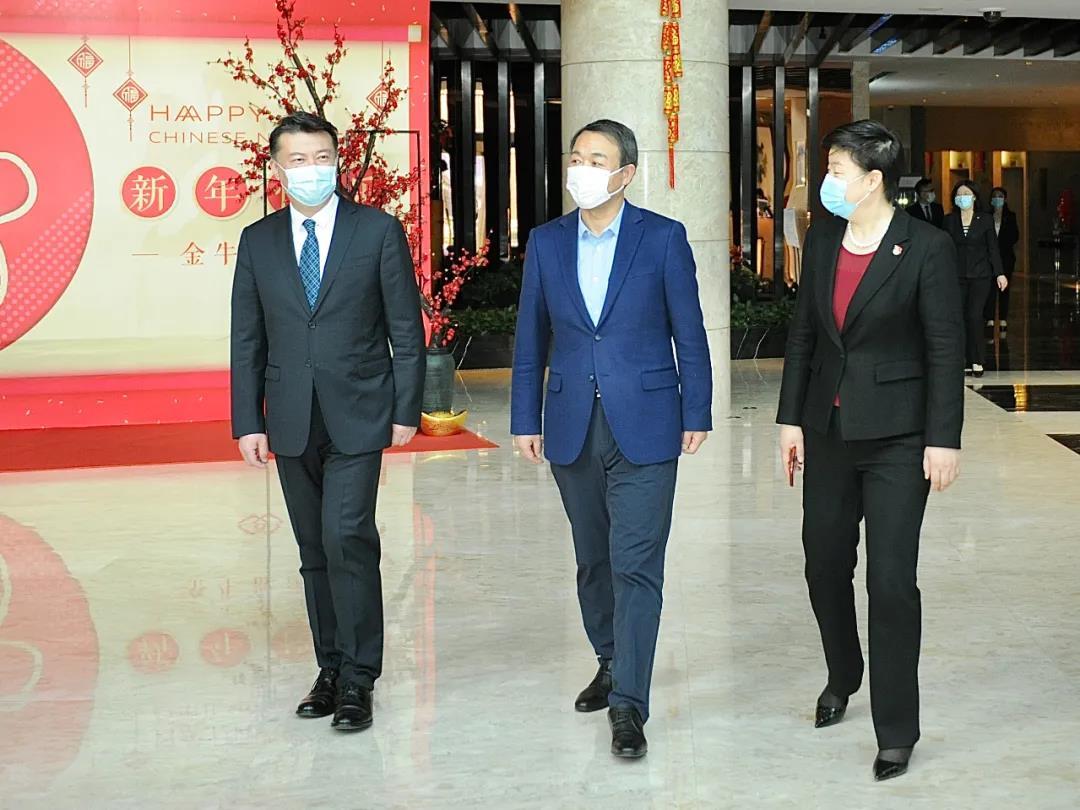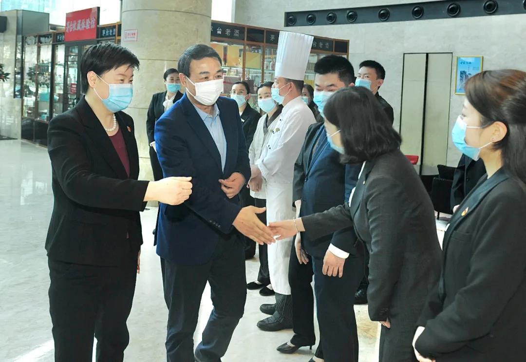 2月11日(农历大年三十)上午,鲁商集团党委书记、董事长兼国欣文旅党委书记、董事长高洪雷,来到济南索菲特银座大饭店看望慰问坚守在工作岗位的一线干部职工,代表集团向广大干部职工致以节日问候和新春祝福,同时实地调研春节期间民生商品市场供应、便民消费服务和疫情防控措施落实情况。国欣文旅首席客户官,太阳集团tcy8722山东文旅酒店集团党委书记、董事长李浩陪同。
