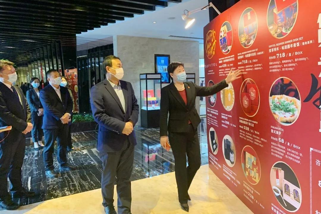 高洪雷深入察看酒店大堂餐吧、49楼银顶旋转餐厅等,了解酒店特色年夜饭销售情况,听取了酒店负责人有关情况汇报,并详细询问商品供应、货源渠道、价格变动和商品追溯等情况。高洪雷同时指出,春节期间要确保商品供应充足、品种丰富多样、质量可靠放心、价格稳定公道。要切实将疫情防控抓实抓细抓到位,确保广大群众度过一个欢乐祥和的春节。