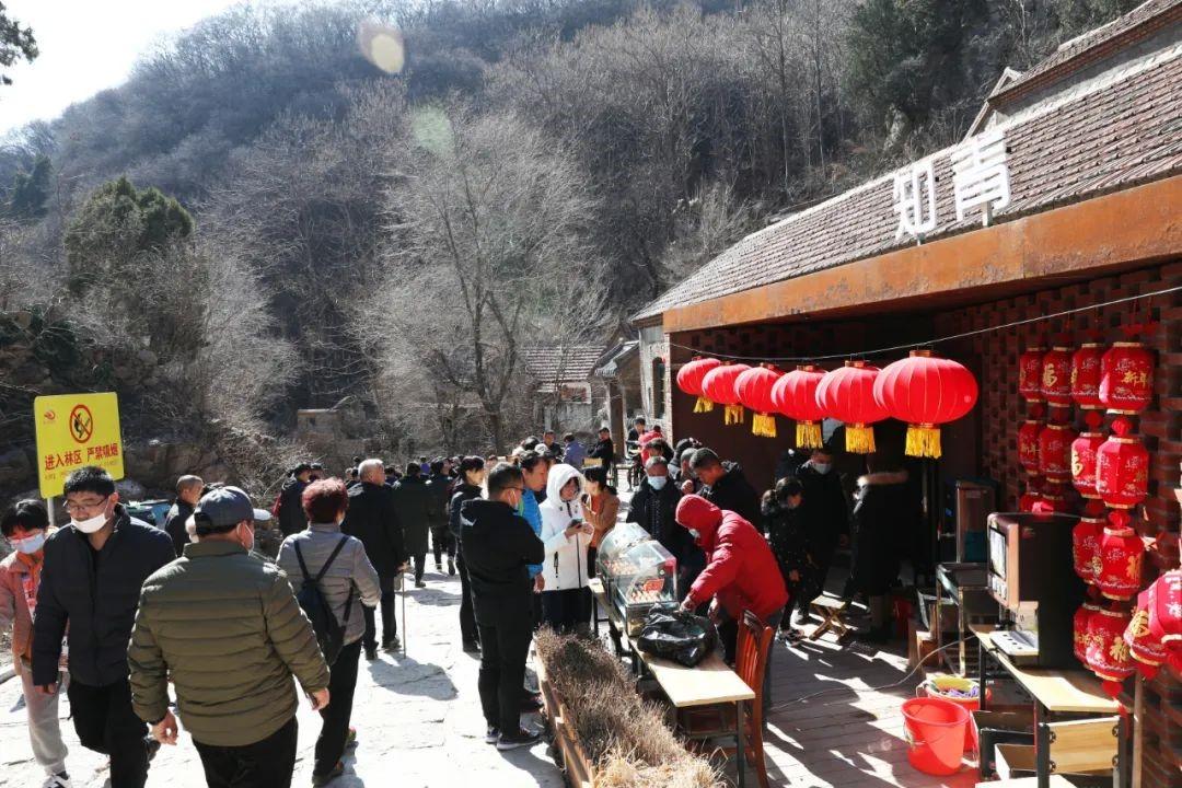 红叶柿岩景区则特意为游客准备了“猜灯谜送年糕”特色游戏,一排排火红的传统宫灯让游客感受春节传统文化。
