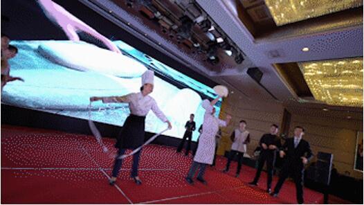 酒店员工风采秀、情景剧“《女儿的婚事》女儿的婚事”等节目,均由酒店员工自编自导自演,展示了青春和向上的力量。网红大厨孙在娇的甩面表演、程劲松的让披萨“舞动”起来,让我们感受到了美食背后的工匠精神。