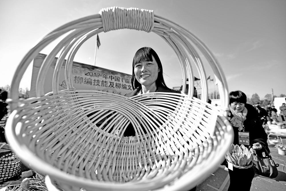 临沂柳编技能大赛选手展示自己的作品 临沂市文化和旅游局供图
