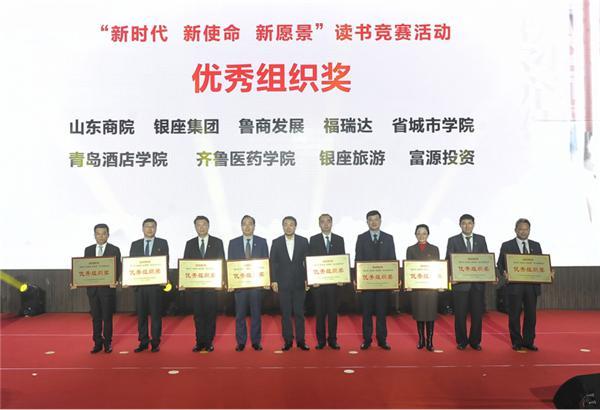 姬德君在致辞中表示,今年是中国共产党成立100周年,在全党开展党史学习教育意义重大。鲁商集团、国欣文旅具有浓厚的文化基因和学习氛围,特别是此次将企业传统的读书竞赛活动和党史学习教育结合起来,是对党中央决策部署和省委工作要求的积极响应。高洪雷书记是著名的历史纪实文学作家,其著作充满了对历史和现实的思考,立意高远,文学素养强,闪耀着人性的光辉。相信此次读书竞赛活动一定会实现文学性与现实性,社会效益与经济效益的有机融合,对提高全体职工的人文素质、创建书香企业必将起到非常重要的促进作用。在启动仪式上, 2020“新时代 新使命 新愿景”读书竞赛活动颁奖典礼也同步举行。