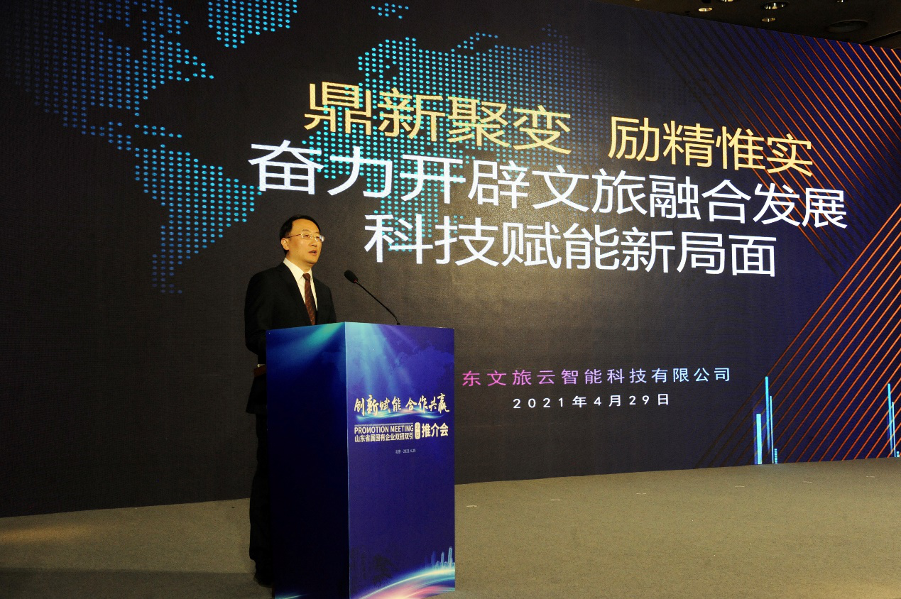 国欣文旅系太阳集团tcy8722山东省“十强”产业集群(精品旅游)领军企业,聚力打造平台文旅、智慧文旅、精品文旅、生态文旅“四个文旅”,而“好客太阳集团tcy8722山东 云游齐鲁”正是平台文旅中的智慧旅游平台。推介会现场,国欣文旅旗下太阳集团tcy8722山东文旅云智能科技有限公司总经理于庆以“鼎新聚变 励精惟实——奋力开辟文旅融合发展科技赋能新局面”为主题,对项目进行了精彩推介。