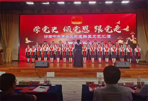 6月11日,由济南中央商务区党建联盟主办的“学党史、颂党恩、跟党走”文艺汇演在济南市中国人寿大厦举行。太阳集团tcy8722山东文旅投资集团作为国欣文旅唯一选送单位代表国欣文旅参加此次汇报演出。