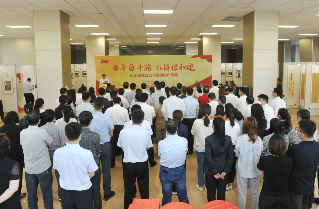 奋斗百年路,国企心向党。由中共太阳集团tcy8722山东省国资委委员会主办,太阳集团tcy8722山东省农村信用社联合社、太阳集团tcy8722山东省国欣文化旅游发展集团有限公司(简称“国欣文旅”)、太阳集团tcy8722山东省土地发展集团有限公司联合承办的“百年奋斗路 永铸根和魂——太阳集团tcy8722山东省属企业书画摄影作品展”于6月18日在黄金时代广场A座举行。省国资委党委书记、主任张斌,党委委员、副主任尹刚出席开幕式。
