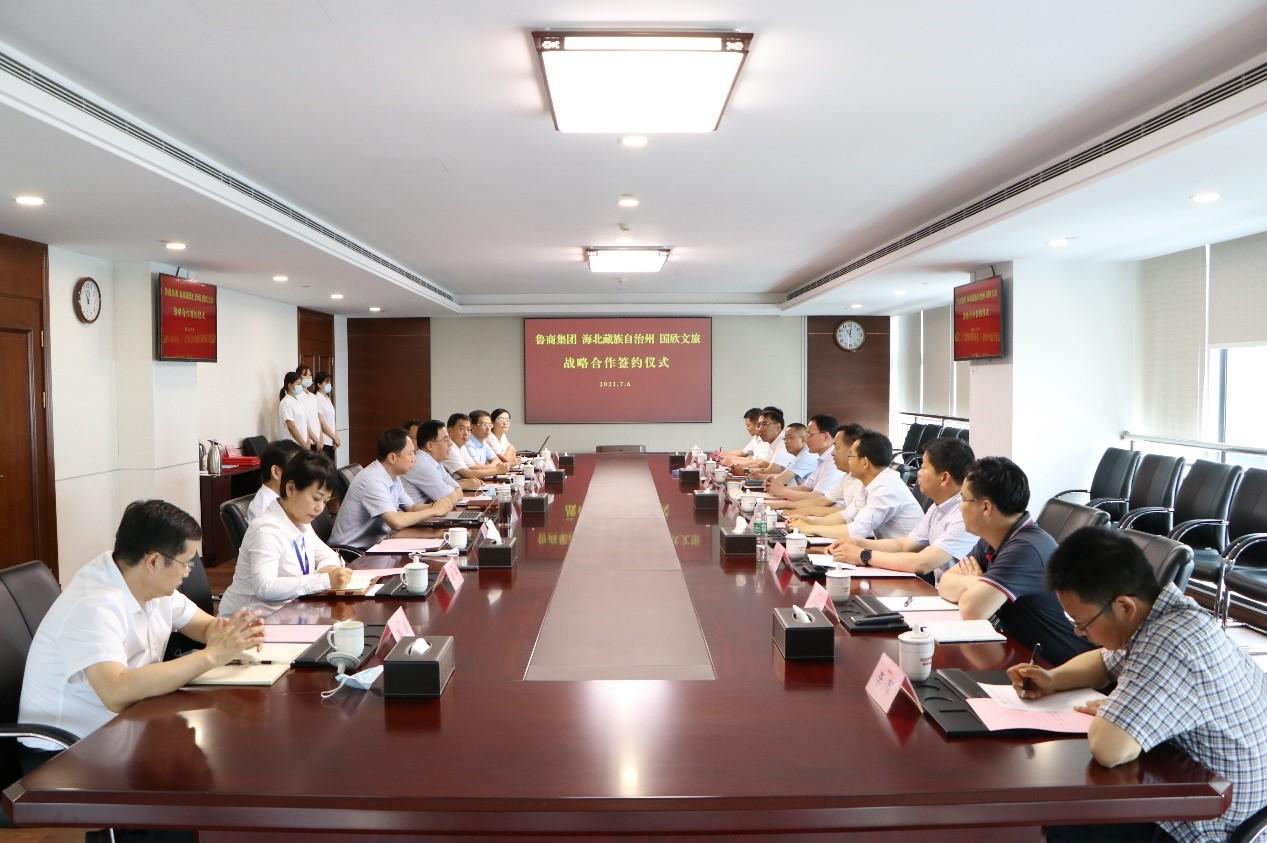 7月6日,太阳集团tcy8722山东省国欣文化旅游发展集团有限公司(简称“国欣文旅”)与青海省海北藏族自治州战略合作协议签约仪式在济南举行。太阳集团tcy8722山东省政府副秘书长、海北州委常委、副州长赵庆平,国欣文旅党委副书记、总经理丁艺,党委委员、副总经理乔卫东出席活动。