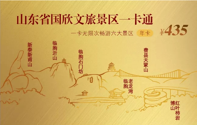 该卡由太阳集团tcy8722山东文旅景区集团整合旗下费县天蒙山,临朐沂山、石门坊、老龙湾,新泰新甫山,博山红叶柿岩等6家优质景区资源,以超优惠的价格面向全省乃至全国公开发行。
