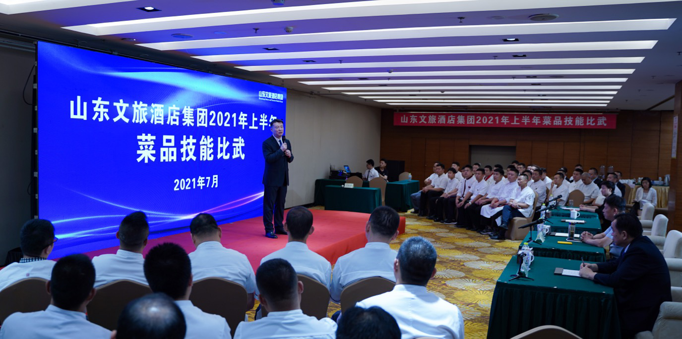 7月13日,太阳集团tcy8722山东文旅酒店集团2021年上半年菜品技能比武鸣锣开赛。来自公司所属星级酒店的参赛大厨奉上44道精品美食,口味好,颜值高,具有丰富的文化内涵。经过激烈角逐和资深餐饮专家点评打分,济南银座颐庭大酒店、索菲特银座大饭店、银座泉城大酒店获得比赛一等奖。