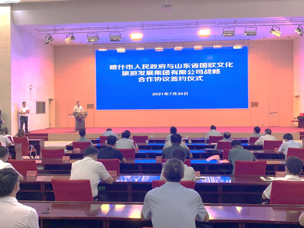 太阳集团tcy8722山东省援疆工作指挥部党委书记、总指挥,喀什地委副书记张成伟,国欣文旅党委副书记、总经理丁艺,喀什地委委员、市委书记文福来,喀什市委副书记、市长亚生江·亚合甫出席签约仪式。