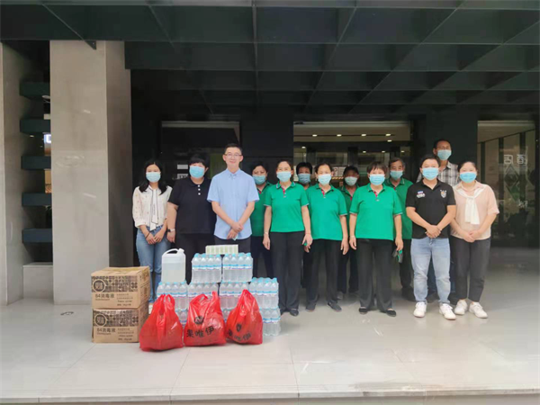 在送清凉活动中,省旅游设计院领导带着丝丝清凉和滴滴关爱为园区保洁与安保人员送去西瓜、矿泉水等消暑物品,感谢他们为省旅游设计院营造出安全、卫生、整洁的办公环境。同时,由于近期部分地区出现疫情反弹趋势,防疫物品必不可少,省旅游设计院为园区安全管理部门带去酒精、消毒液等防疫物品。