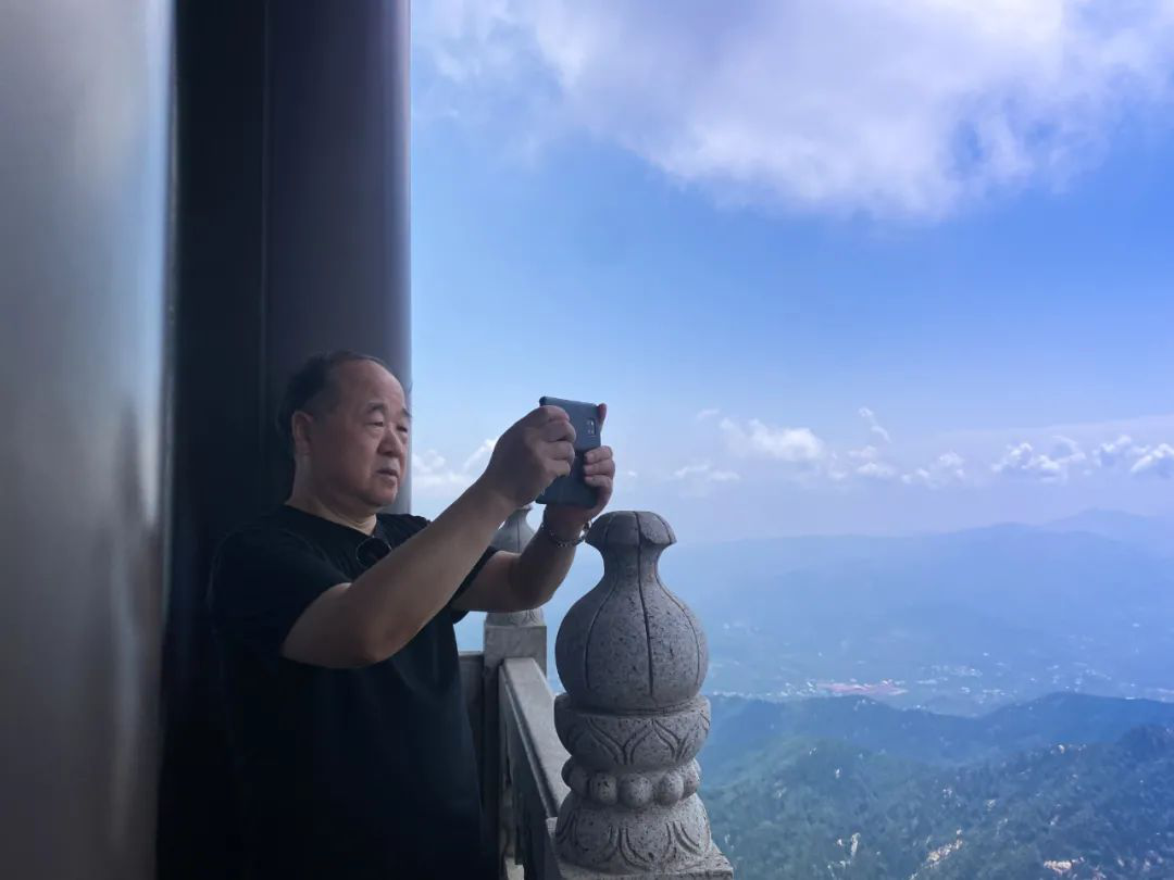 8月6日,诺贝尔文学奖得主、著名作家莫言到天蒙山景区参观考察,品小调、游沂蒙、观山水。