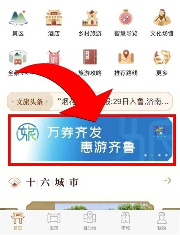 怎样领取并使用文旅惠民消费券?首先,搜索下载“云游齐鲁APP”,或直接在微信搜索“云游齐鲁”小程序。点击“万券齐发,惠游齐鲁”。