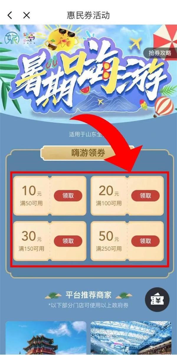 领取好的优惠券要如何使用?在刚才的活动页面下滑,就能看到优惠券支持的景区。