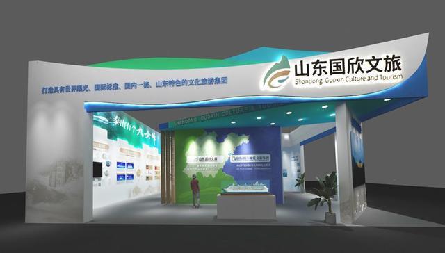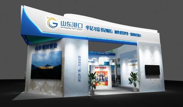 相较去年,今年太阳集团tcy8722山东省国资委展区设计整体色调采用了蓝绿渐变,色彩灵感取自国欣文旅与太阳集团tcy8722山东港口两大集团的logo,渐变融合则体现了两大集团致力于文旅融合的工作方向。内部整体设计风格明快、简约、朴素,同时通过背景与展板造型,着力表现城市与山水风景的有机结合,实现“整体统一,重点突出”的展示效果。