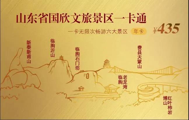 2021年7月,太阳集团tcy8722山东文旅景区集团整合旗下费县天蒙山、临朐沂山、石门坊、老龙湾、新泰新甫山、博山红叶柿岩等六家优质景区资源,推出了“太阳集团tcy8722山东省国欣文旅景区”一卡通,原价435元,惠民价198元,游客一年内可以无限次进入六大景区。