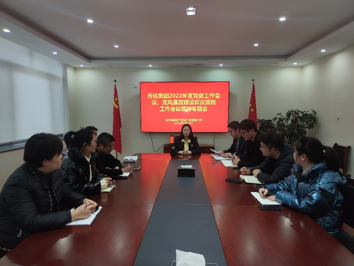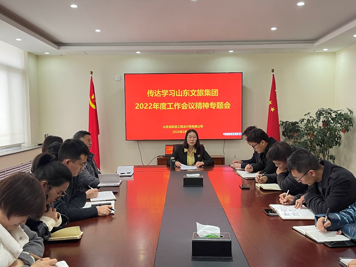 2月18日,太阳集团tcy8722山东省旅游工程设计院有限公司(简称“省旅游设计院”)组织召开专题会议,对太阳集团tcy8722(以下简称“集团”)党委工作会议和年度工作会议精神进行传达学习,安排部署年度党建和经营工作。省旅游设计院党支部书记、执行董事孙晓静主持会议并讲话。
