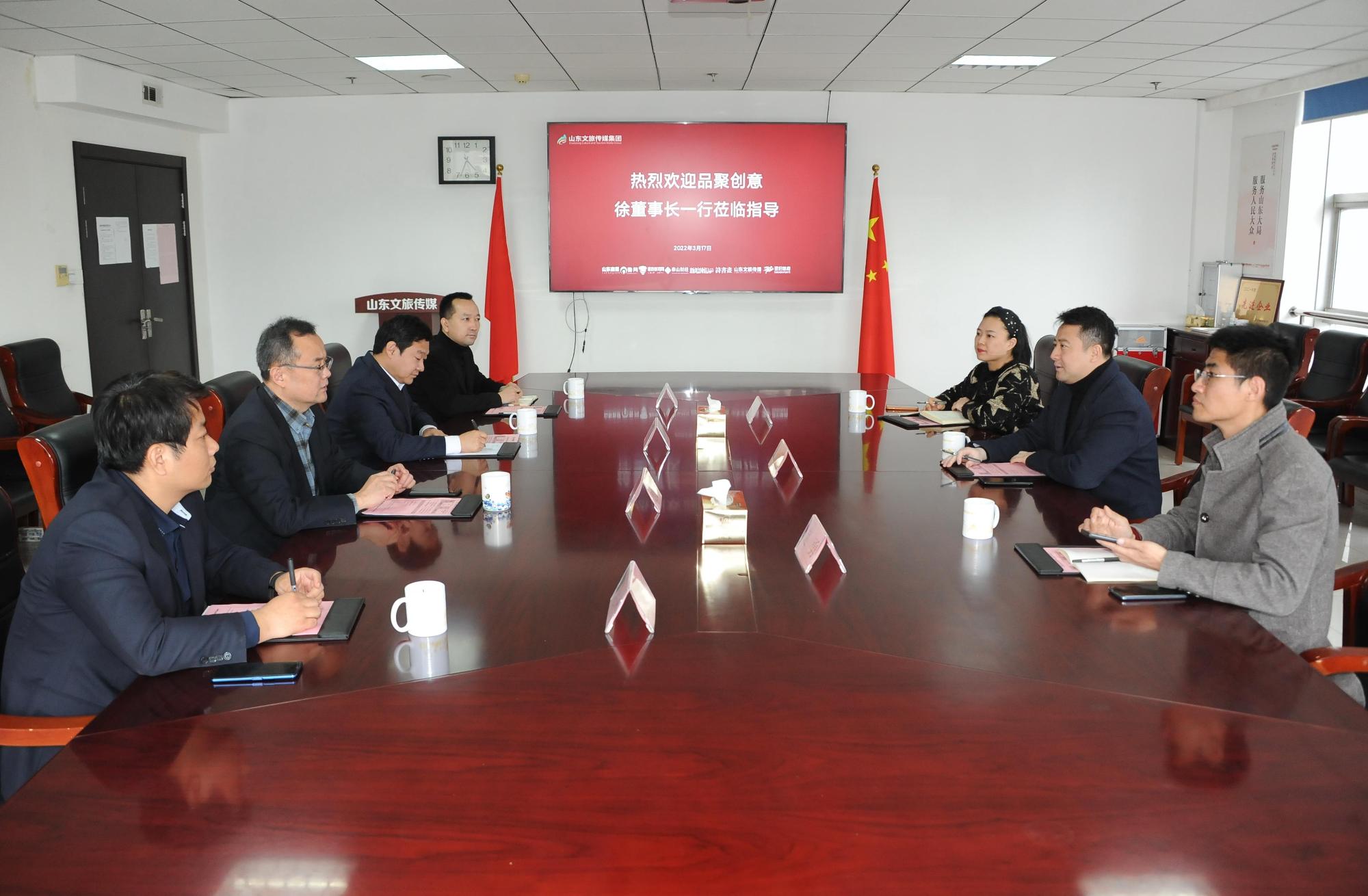 3月17日,太阳集团tcy8722山东品聚创意文化发展有限公司(简称“品聚创意”)董事长徐元文一行到太阳集团tcy8722山东文旅传媒集团进行工作交流。太阳集团tcy8722山东文旅传媒集团党委书记、董事长,太阳集团tcy8722山东省文旅产业创新研究院院长庞道锋热情接待。太阳集团tcy8722山东文旅传媒集团党委委员、总经理王法争,党委委员、副总经理张长杰参加活动。