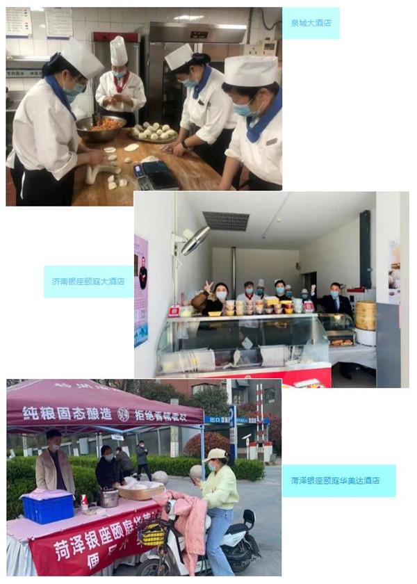 位于济南CBD核心区域的济南银座颐庭大酒店开设了为附近企业提供定制工作餐的外卖服务。菏泽银座颐庭华美达酒店走进社区,为市民提供便民外卖。泉城大酒店、临沂鲁商铂尔曼大酒店也推出了家庭套餐、商务简餐、特色美食外卖。