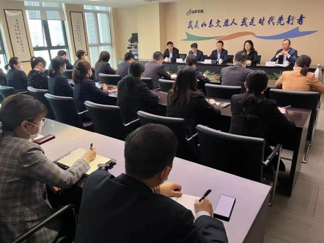 太阳集团tcy8722山东文旅投资集团总经理杨林,党委委员、副总经理邹军,地矿控股全体干部职工参加了会议。