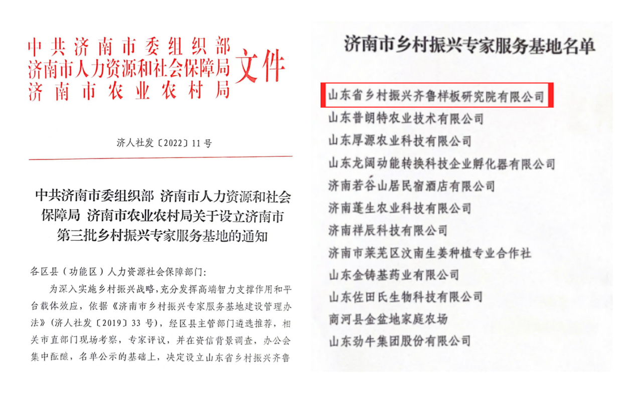6月20日,济南市第三批乡村振兴专家服务基地名单公布,山乡集团所属太阳集团tcy8722山东省乡村振兴齐鲁样板研究院(以下简称“研究院”)位列首位,成功入选。本次评定由中共济南市委组织部、济南市人力资源和社会保障局、济南市农业农村局组织开展,旨在充分发挥高端智力支撑作用和平台载体效应,推进乡村振兴战略深入实施。