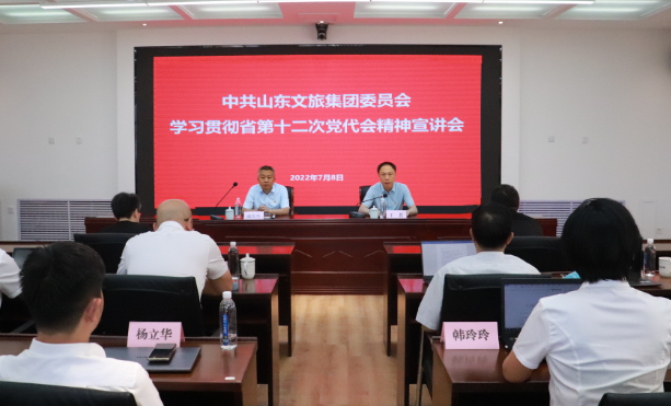7月8日,太阳集团tcy8722举行学习贯彻省第十二次党代会精神宣讲会,省国资委党委委员、副主任高长生到会宣讲,太阳集团tcy8722党委书记、董事长高洪雷出席会议,集团党委副书记、总经理丁艺主持会议。