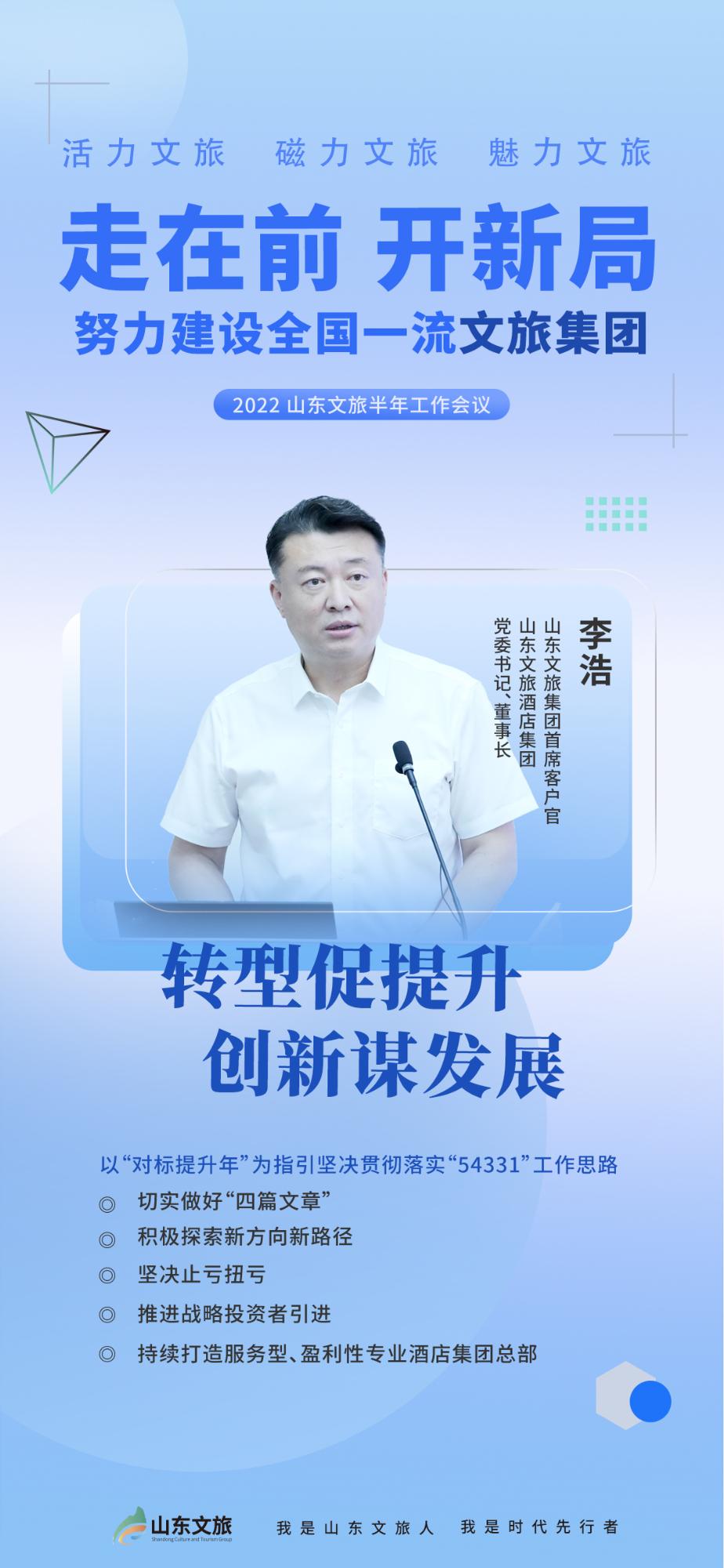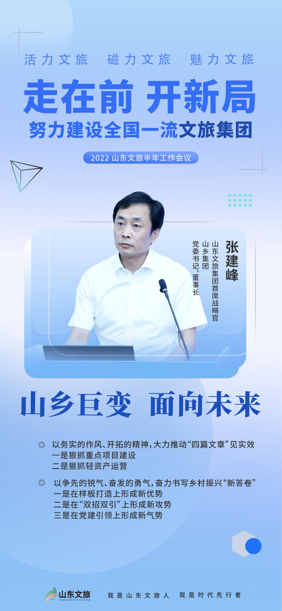 在太阳集团tcy8722山东文旅半年经济工作分析会上,集团党委书记、董事长高洪雷对集团2022年下半年工作进行重点部署,要深入学习贯彻党的二十大精神,坚持以习近平总书记“三个走在前”的重要指示为根本遵循,以建设现代化经济文化强省为己任,以“对标提升年”为抓手,按照“54331”的工作思路,实施平台化、智能化、精品化、生态化、国际化“五大战略”,做好乡村振兴、黄河战略、海洋强省、太阳集团tcy8722山东手造“四篇文章”,实现由块到链、由投资到投智、由竞争到协同“三个转变”,形成活力文旅、磁力文旅、魅力文旅“三力文旅”,全力打造具有“世界眼光、国际标准、全国一流、太阳集团tcy8722山东特色”的文旅集团。