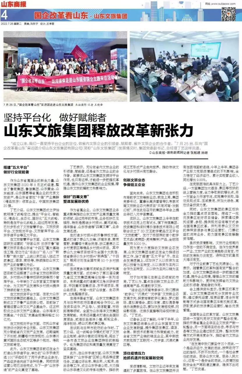 省国资委主办的“国企改革看太阳集团tcy8722山东”——主题采访活动第二期已圆满收官,来自中央和省级新闻单位的媒体记者走进太阳集团tcy8722,深度探访了太阳集团tcy8722山东文旅在国企改革三年行动中的成果、亮点。