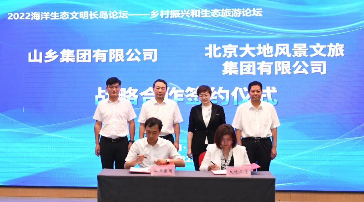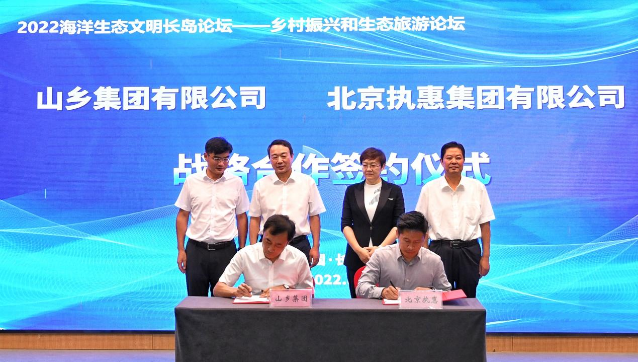 在战略合作签约仪式上,山乡集团分别与北京大地风景文旅集团、北京执惠集团签订战略合作协议。